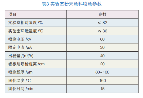按配方称量原材料,混料3 min,通过挤出机熔融混炼,冷却压片破碎,利用ACM磨粉机粉碎、分级、筛选,过160目筛后即得粒径分布均匀的粉体。喷涂、固化完全后测试涂膜各项性能,各过程参数如表3所示。